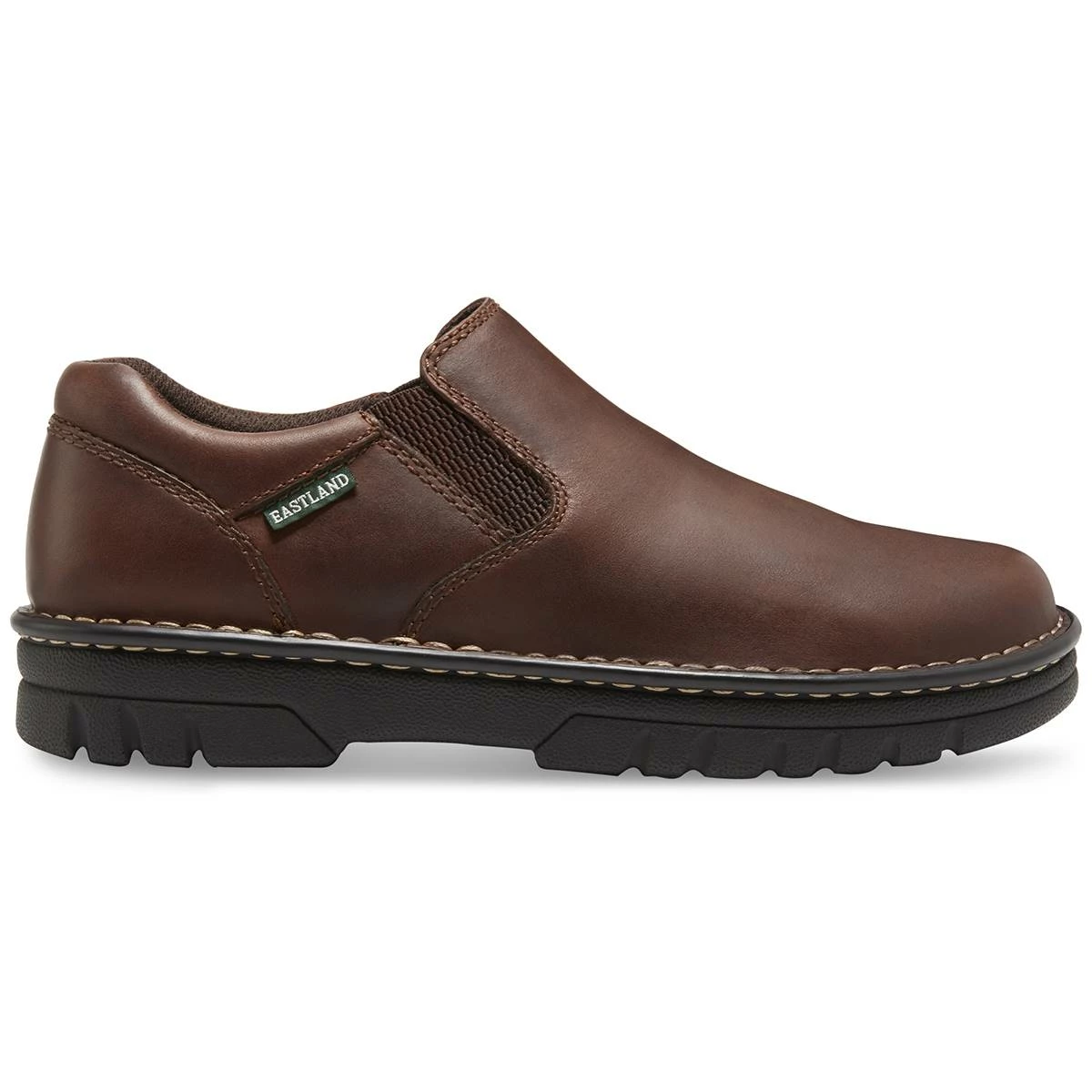 These Mens Eastland Newport slip-on loafers get you from work to play with ease. The padded collar plus dual elastic goring with a removable, cushioned leather insole with extra soft comfort zones does away with over-stressed feet. Shock absorbing Polyurethane outsole offers lightweight durability and traction.