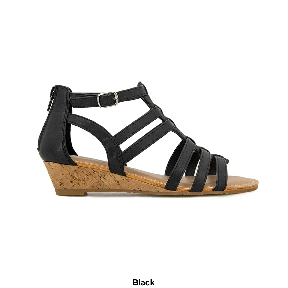 Complete your seasonal look with the Womens Esprit Carrie strappy wedge sandals. This stylish sandal features a cushioned insole, back zip closure, and an adjustable buckle strap closure.